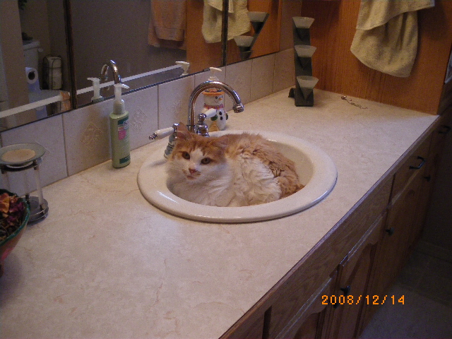 昨日猫のミコがお風呂場のシンクに入ってました。