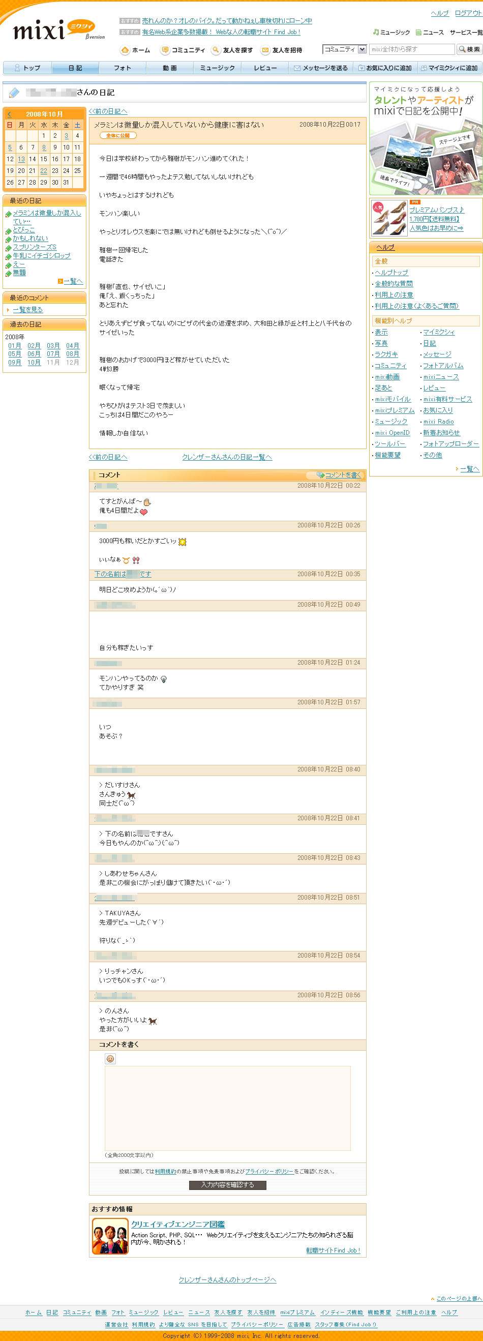 求めたと堂々とmixi日記にて告白している者が出現した。