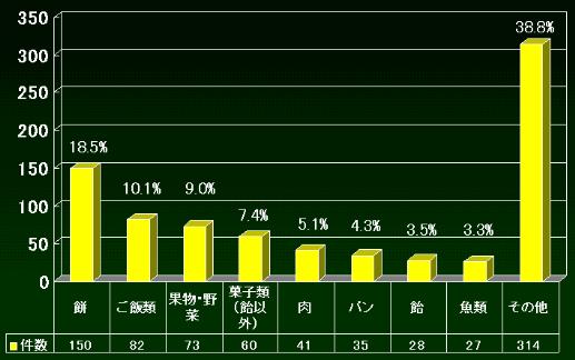 などに搬送された事例は、把握できた計803例のうち、モチの168例が最多で、